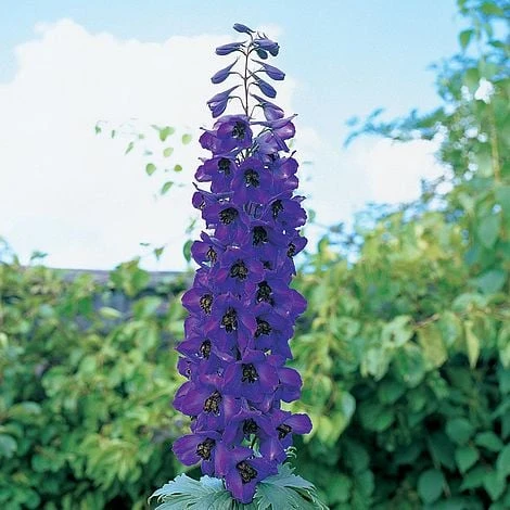 Delphinium ‘Black Knight’ is an outright cottage garden classic. This particularly exceptional variety bears some of the deepest indigo-blue flowers, each with a striking black eye. For maximum impact, plant Delphiniums in bold clumps at the back of a sunny border; they are perfect for adding height and colour. These outstanding perennials will certainly attract lots of attention when planted in your garden. Delphinium ‘Black Knight’ flowers from early summer, often flowering twice, ensuring a long-lasting display of colour. Height: 1.7m (5.5′). Spread: 75cm (29″).